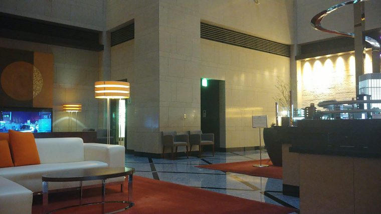 早めに着いた大手町のホテルのロビー。スタッフ以外に人はいませんでした。